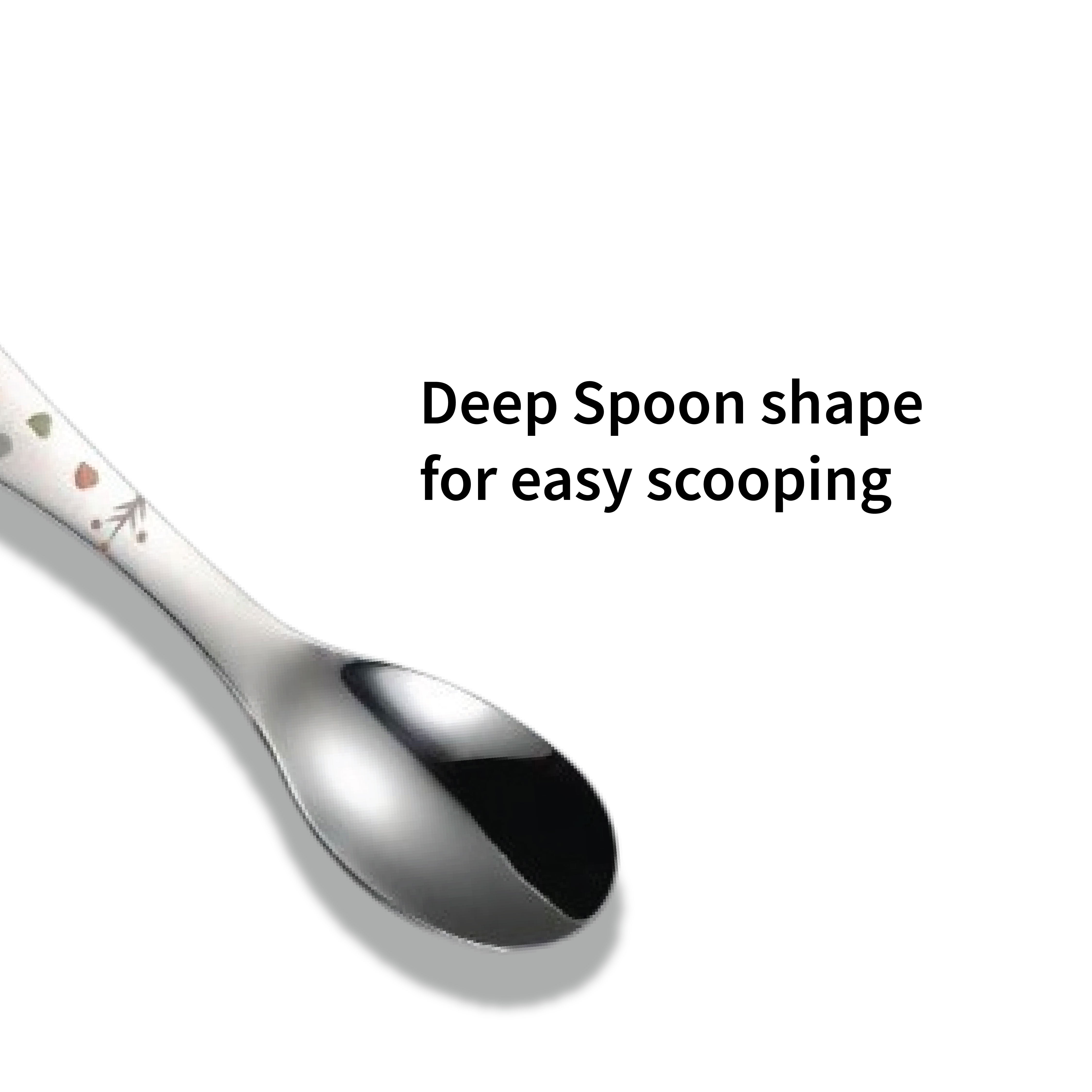 Introducing our Kids Steel Cutlery Set, made from premium heavy steel for durability and easy handling by toddlers. This set includes a spoon and fork, each printed with vibrant, high-quality cartoon designs that will make mealtime more fun for your little one.
