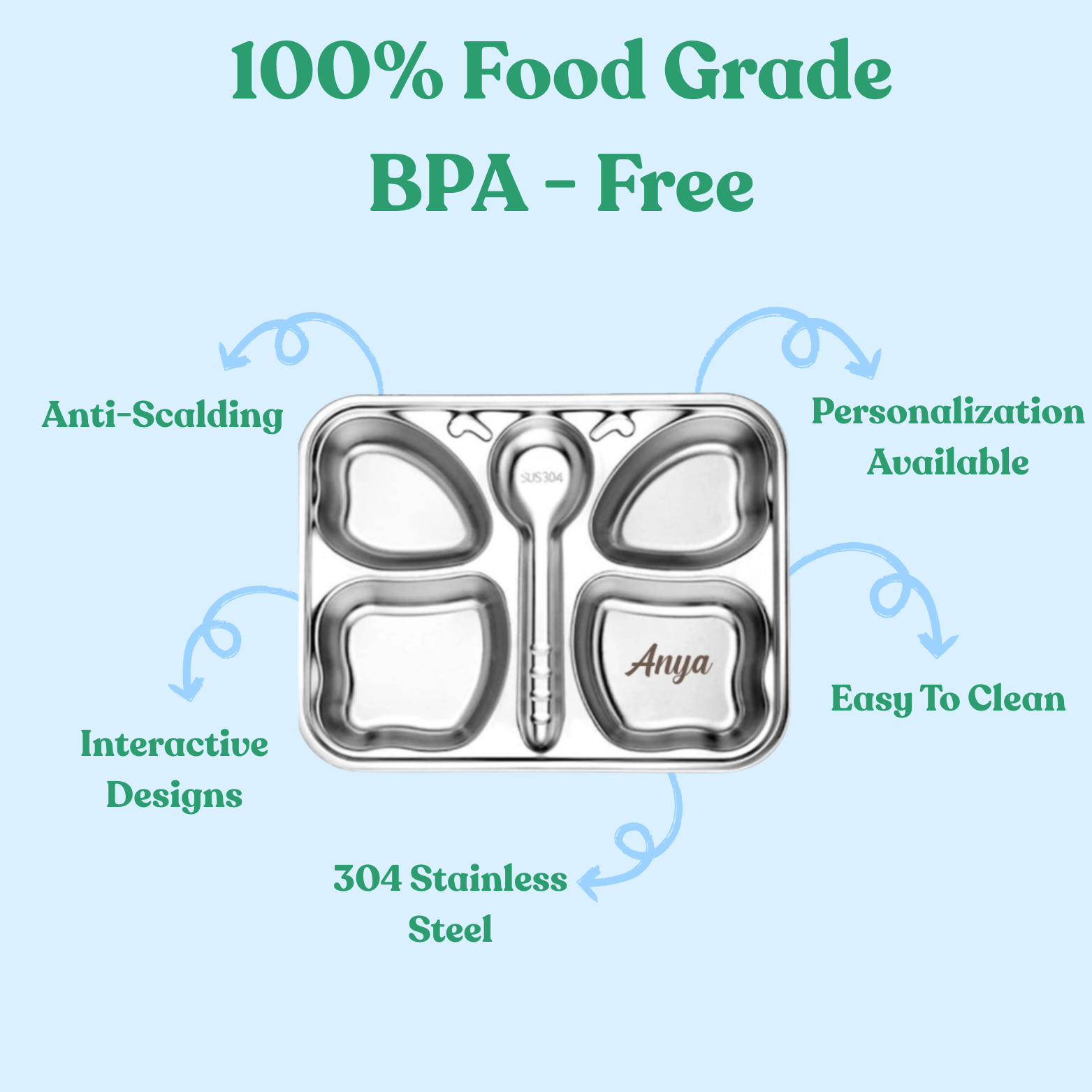 THEONI Divided Meal Plate Tray -Make mealtime magical with our butterfly-shaped kids' plate. Featuring 4 compartments and a special space for a spoon in the center, this kids' plate allows moms to serve a variety of healthy foods in a fun and organized way (Non Suction Plate)