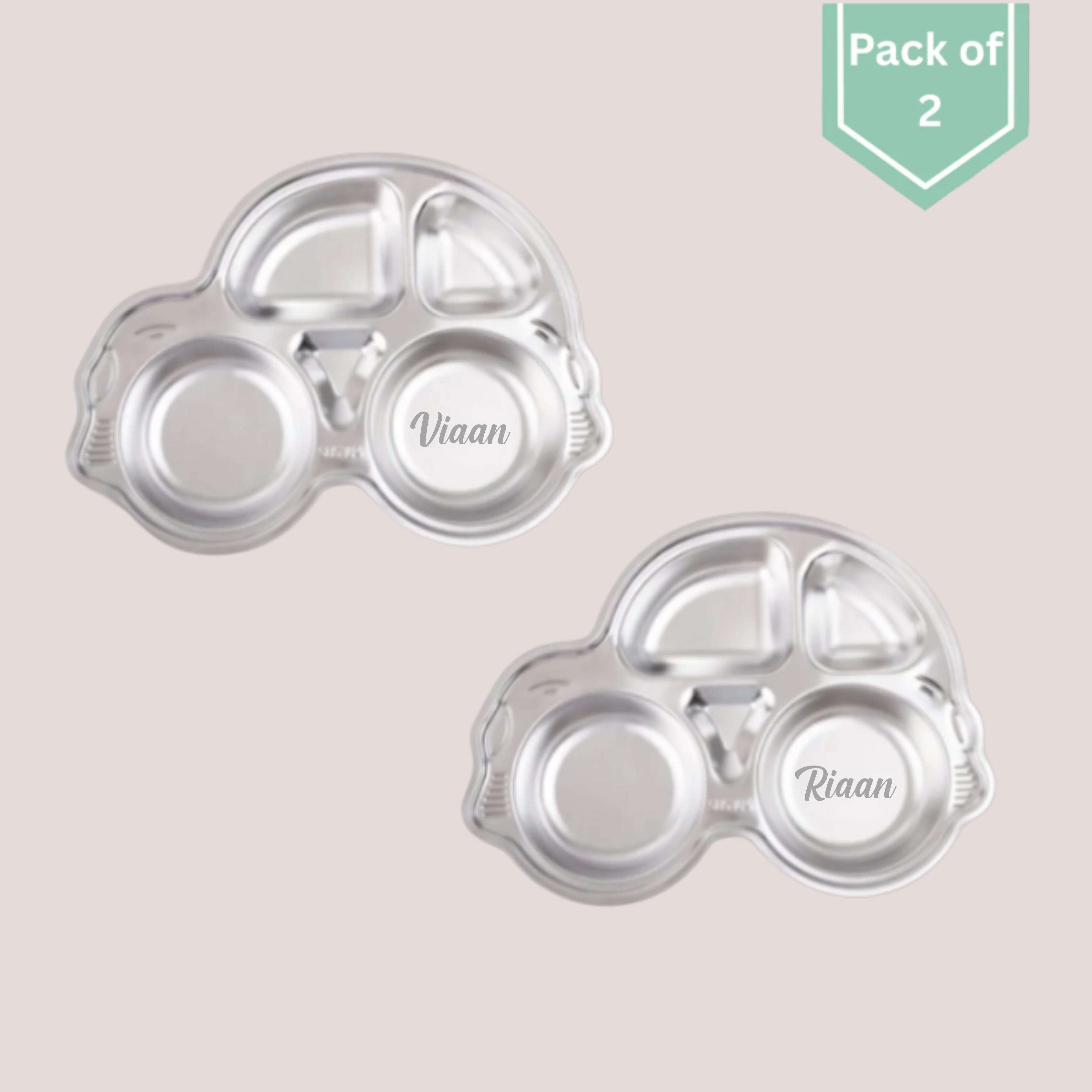 THEONI Divided Meal Plate Tray-4 Compartments Dinner Dish for Baby - Toddler - Kids Feeding Plate set - Car Shape Kids Plate (set of 2) - BPA-Free Safe Fun Non-Toxic Heavy Duty. Meal planning will be even more fun and satisfying when you get to plate the food in this adorable 4 Compartment Meal Plate (Set of 2) for your baby. It's smartly made keeping in mind the eating habits of kids who are learning to experiment with food for the very first time and also for regular eaters. It's made with kid's safe premium quality material that's heavy duty and free of any toxic elements for your baby to have fun while eating. No more boring meal times!