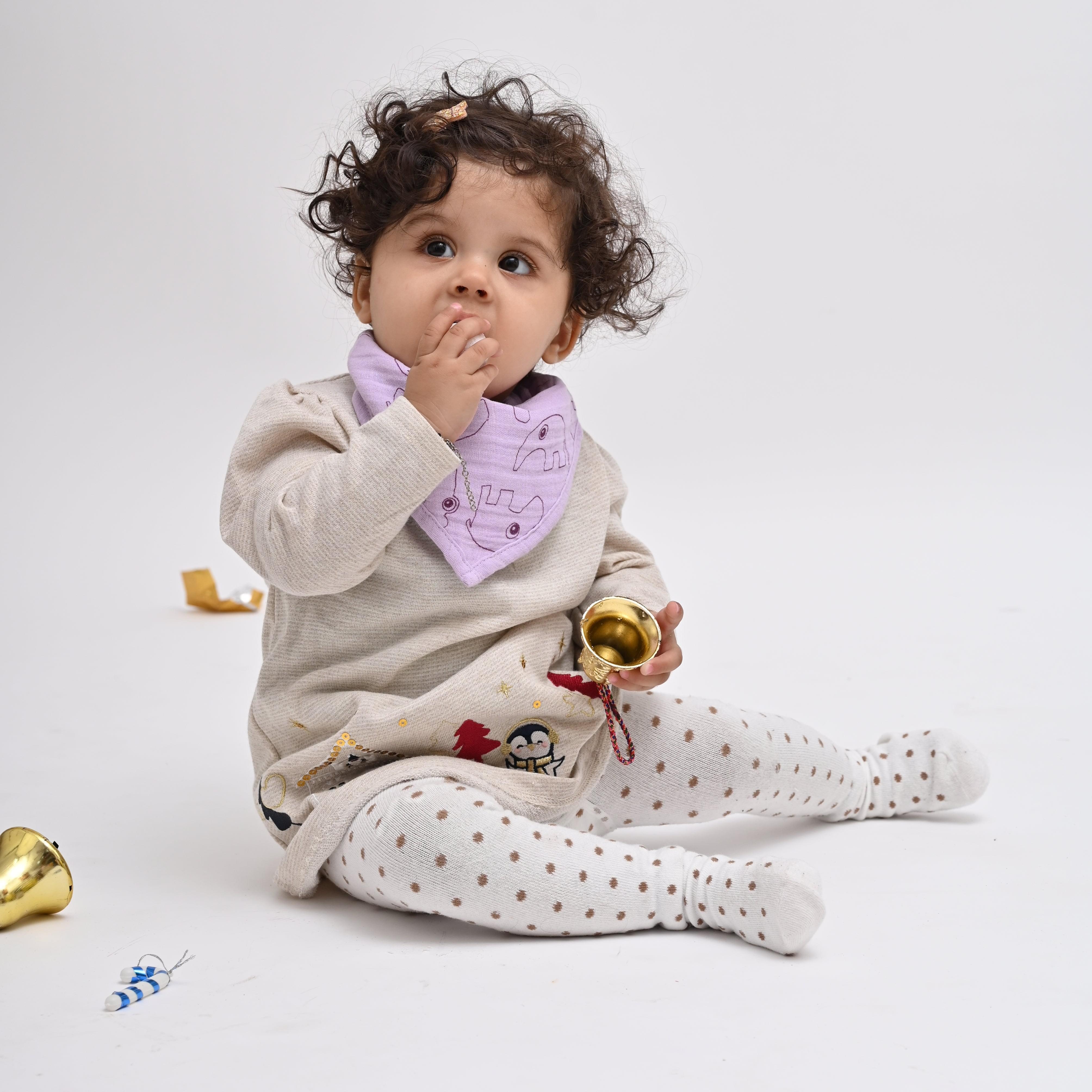 Theoni Forest Friends Lilac 100% Cotton Muslin Bib for Baby brings you the most stylish way to keep your baby neat and tidy. These bandana bibs are made with 100% organic cotton and are soft, comfortable, and breathable. These bibs soak up liquid, dribbles, and messy food spills quickly, keeping your drooling and teething baby dry and fresh all day long.