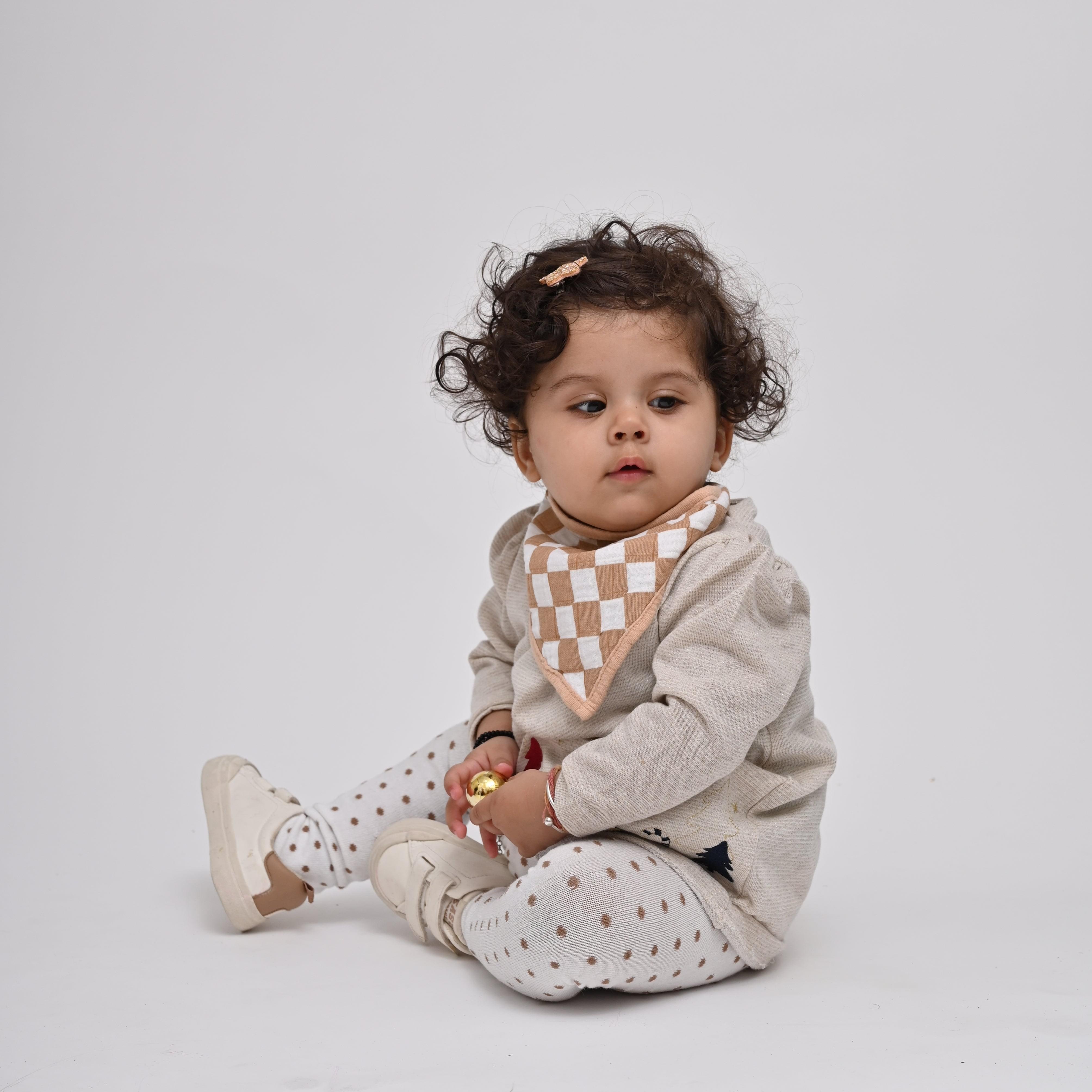 THEONI Racing Checks: Sand 100% Cotton Muslin Bib for Baby brings you the most stylish way to keep your baby neat and tidy. These bandana bibs are made with 100% organic cotton and are soft, comfortable, and breathable. These bibs soak up liquid, dribbles, and messy food spills quickly, keeping your drooling and teething baby dry and fresh all day long.