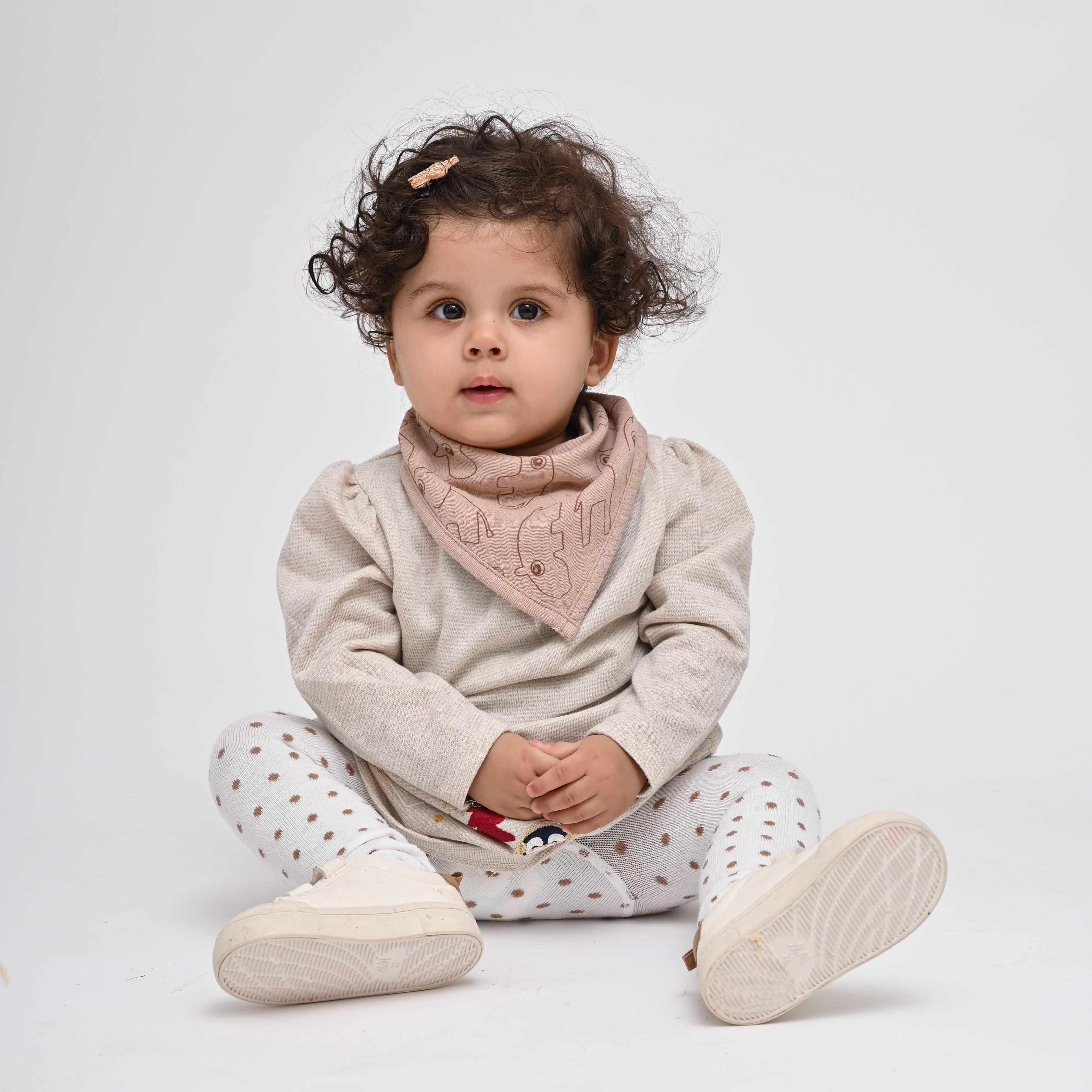 Theoni Forest Friends Sand 100% Cotton Muslin Bib for Baby brings you the most stylish way to keep your baby neat and tidy. These bandana bibs are made with 100% organic cotton and are soft, comfortable, and breathable. These bibs soak up liquid, dribbles, and messy food spills quickly, keeping your drooling and teething baby dry and fresh all day long.