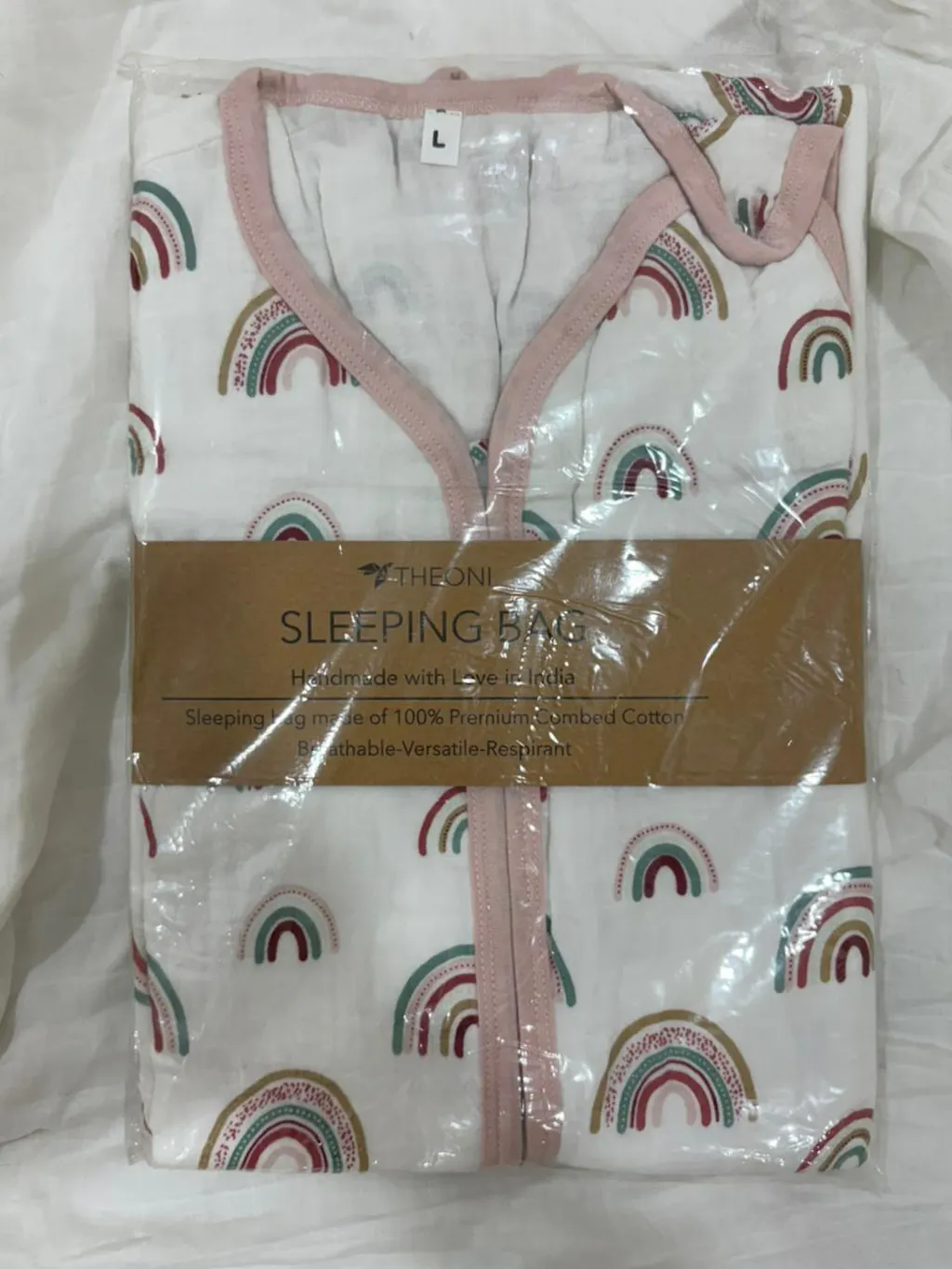 Theoni’s baby sleeping bags are “wearable blankets” designed for babies to be used instead of traditional blankets and sheets. Featuring the elegant Hawaiian Rainbow pattern, Our Baby Sleep Bags can be worn by the baby to help stay at the right temperature through the night without the problem of blankets and sheets being kicked off or getting tangled up. They are eco-friendly and organic to give complete comfort and care to your little one and appropriate uninterrupted day and night sleep. Available in different sizes to suit your growing baby, the cute wearable blankets provides ample space inside the bag with a super-soft feel. This muslin sleeping sack cum wearable blankets ideal for newborn babies too.