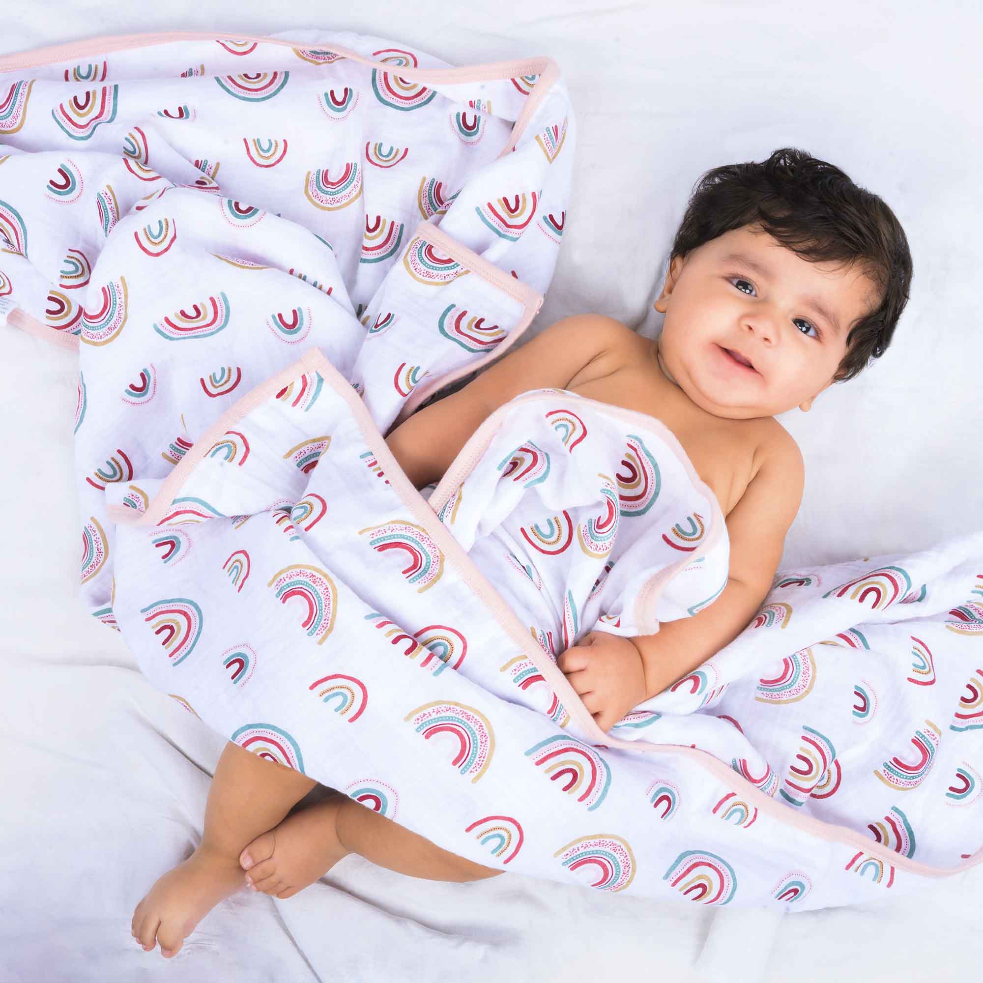 Theoni’s muslin blanket makes for a perfect airy blanket to snuggle, because of its exceptional breathability. Our open weaves and lightweight muslin fabric gives great airflow and massively reduces the risk of a baby overheating and allows a sound sleep! Being gentle on the baby’s skin, it can also be the perfect eco-friendly cuddly gift for new mothers and babies. They are also a great gifting option because of its soft and luxurious feel.