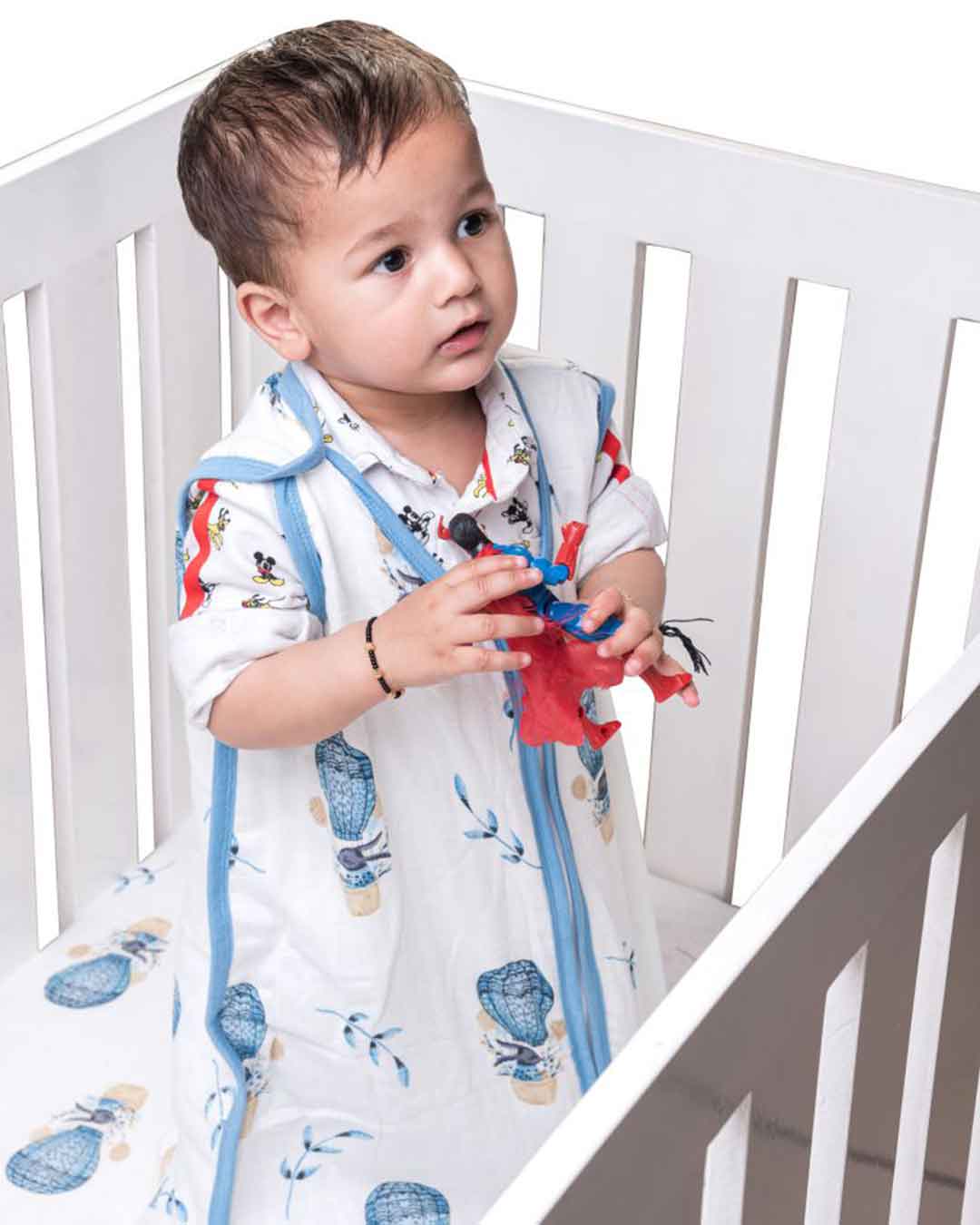 Theoni’s baby sleeping bags are “wearable blankets” designed for babies to be used instead of traditional blankets and sheets. Featuring the elegant Cappadocia Dreams Blue pattern, Our Baby Sleep Bags can be worn by the baby to help stay at the right temperature through the night without the problem of blankets and sheets being kicked off or getting tangled up. They are eco-friendly and organic to give complete comfort and care to your little one and appropriate uninterrupted day and night sleep. Available in different sizes to suit your growing baby, the cute wearable blankets provides ample space inside the bag with a super-soft feel. This muslin sleeping sack cum wearable blankets ideal for newborn babies too.