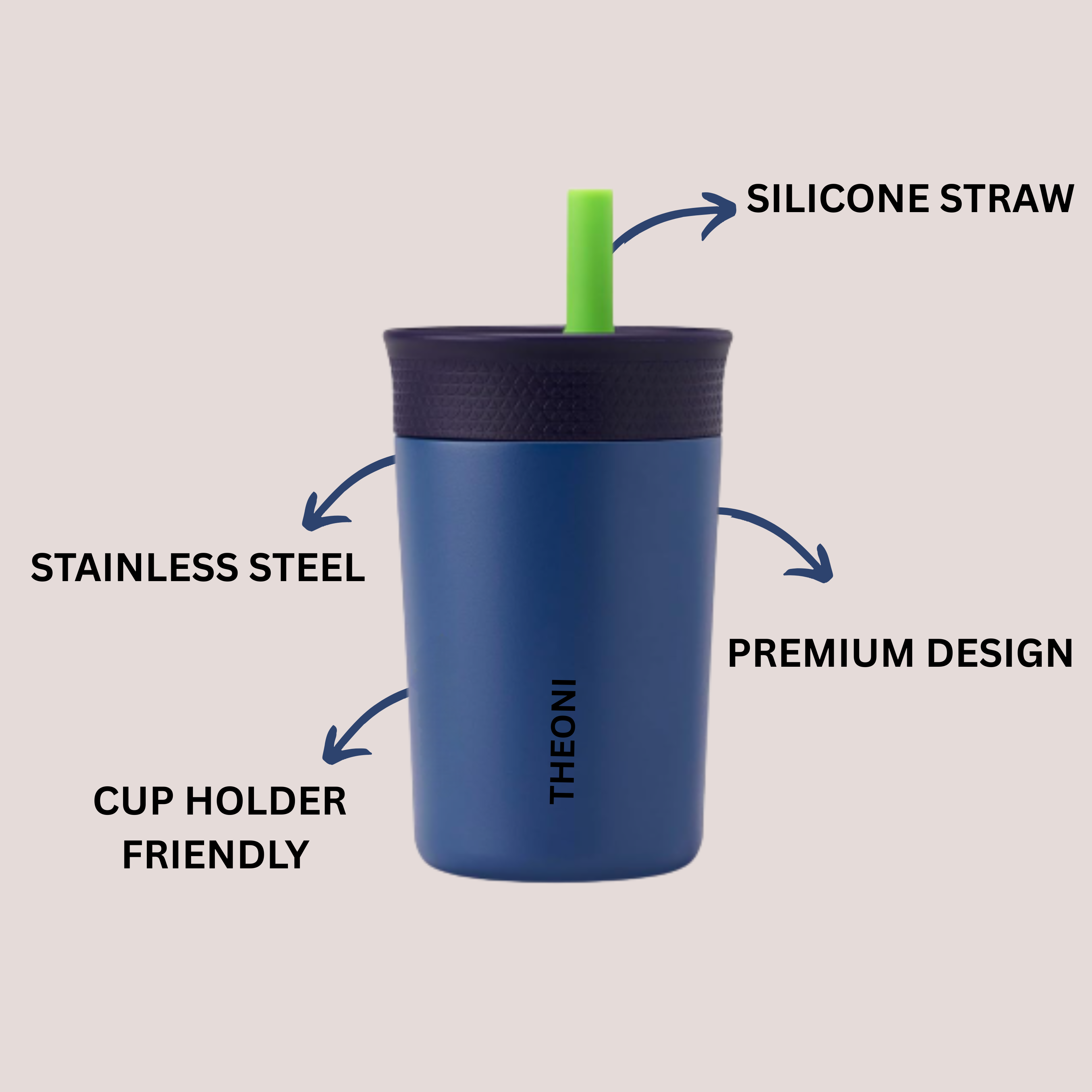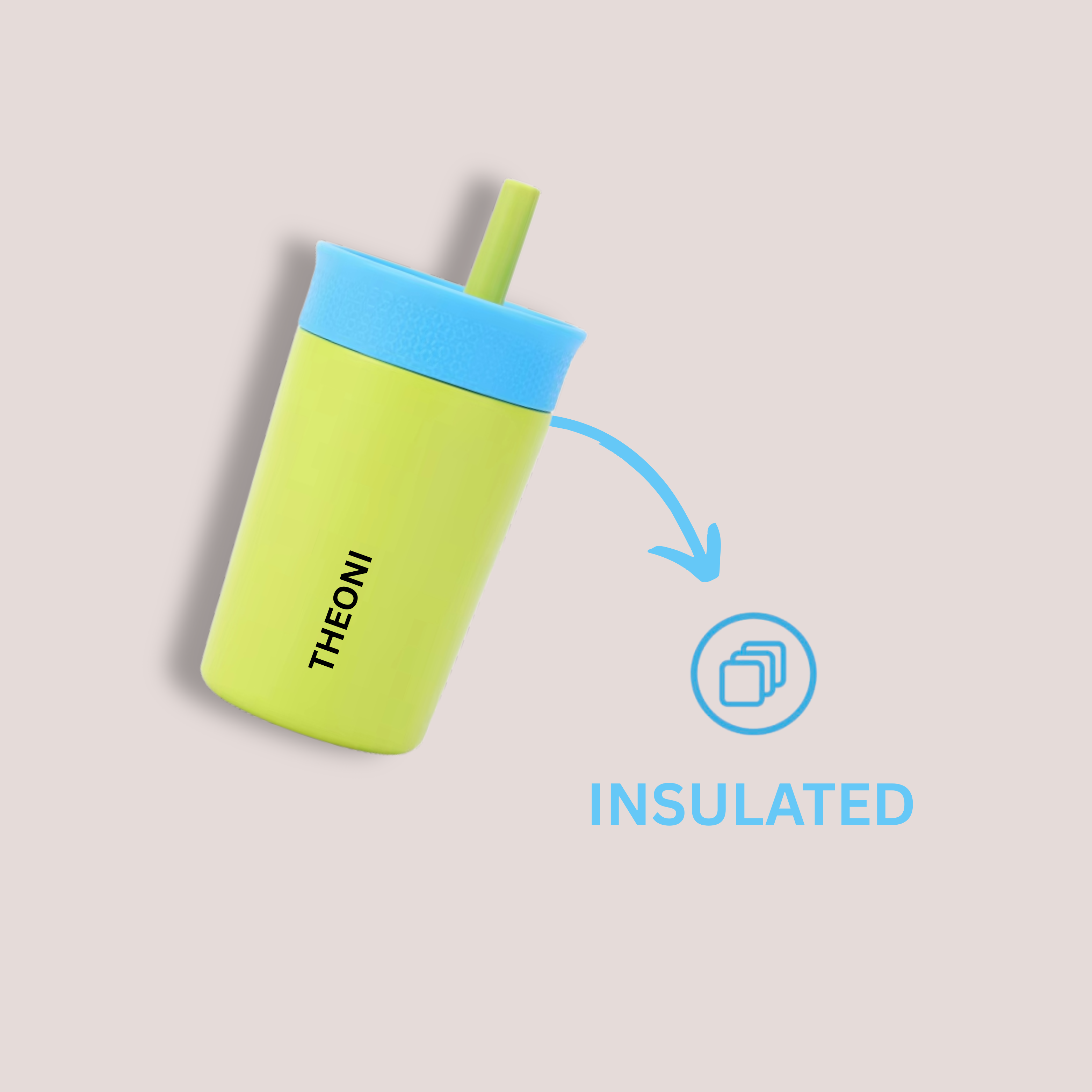 Make sipping fun and mess-free with Theoni Kids Stainless Steel Insulated Tumbler.