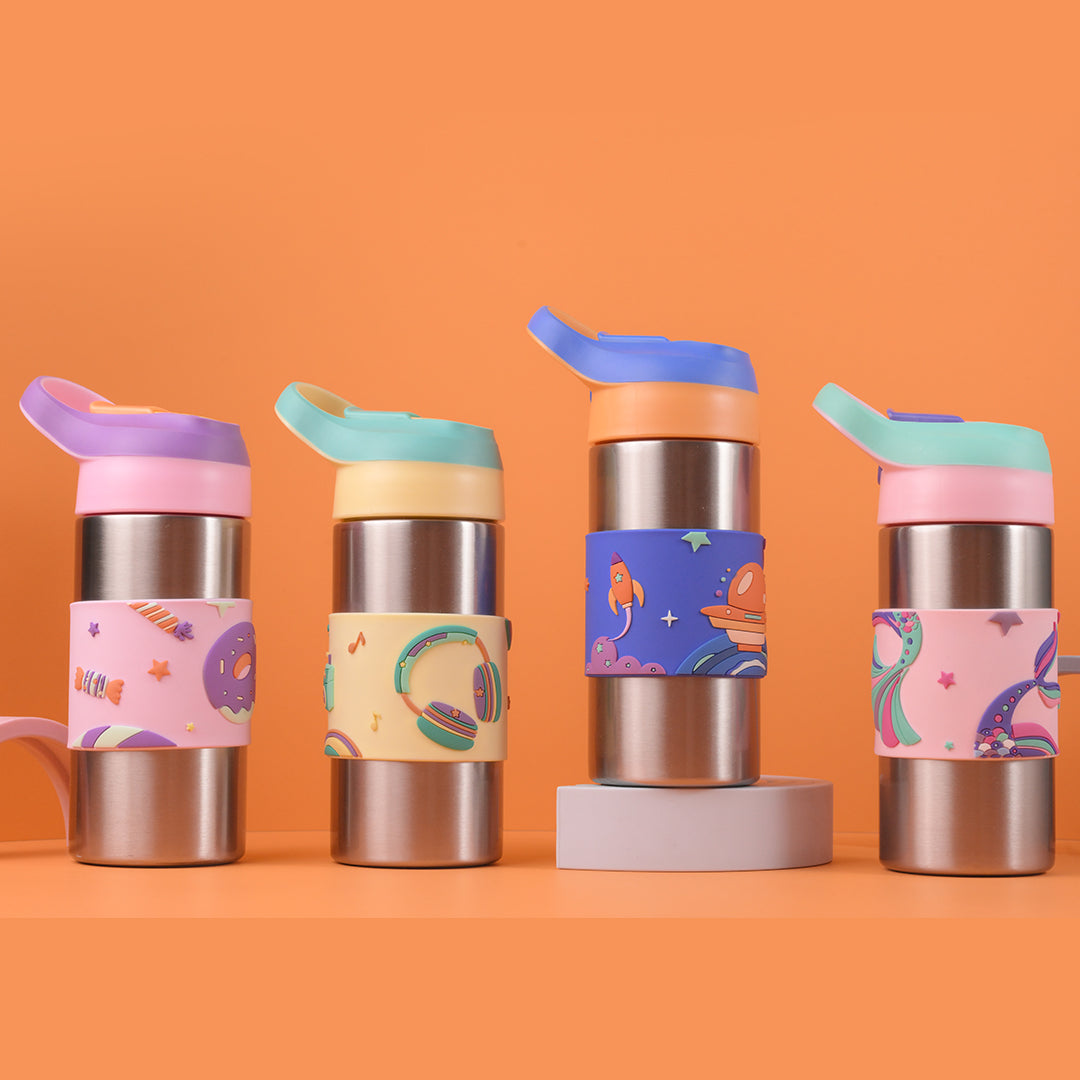 With a perfect 400ml capacity, this kids’ water bottle fits easily into school bags and lunch backpacks. Available in four kid-loved patterns — Milo Blue, Pixi Pink, Stereo Green, and Crumbl Purple — it combines durability, safety, and fun in one everyday essential.