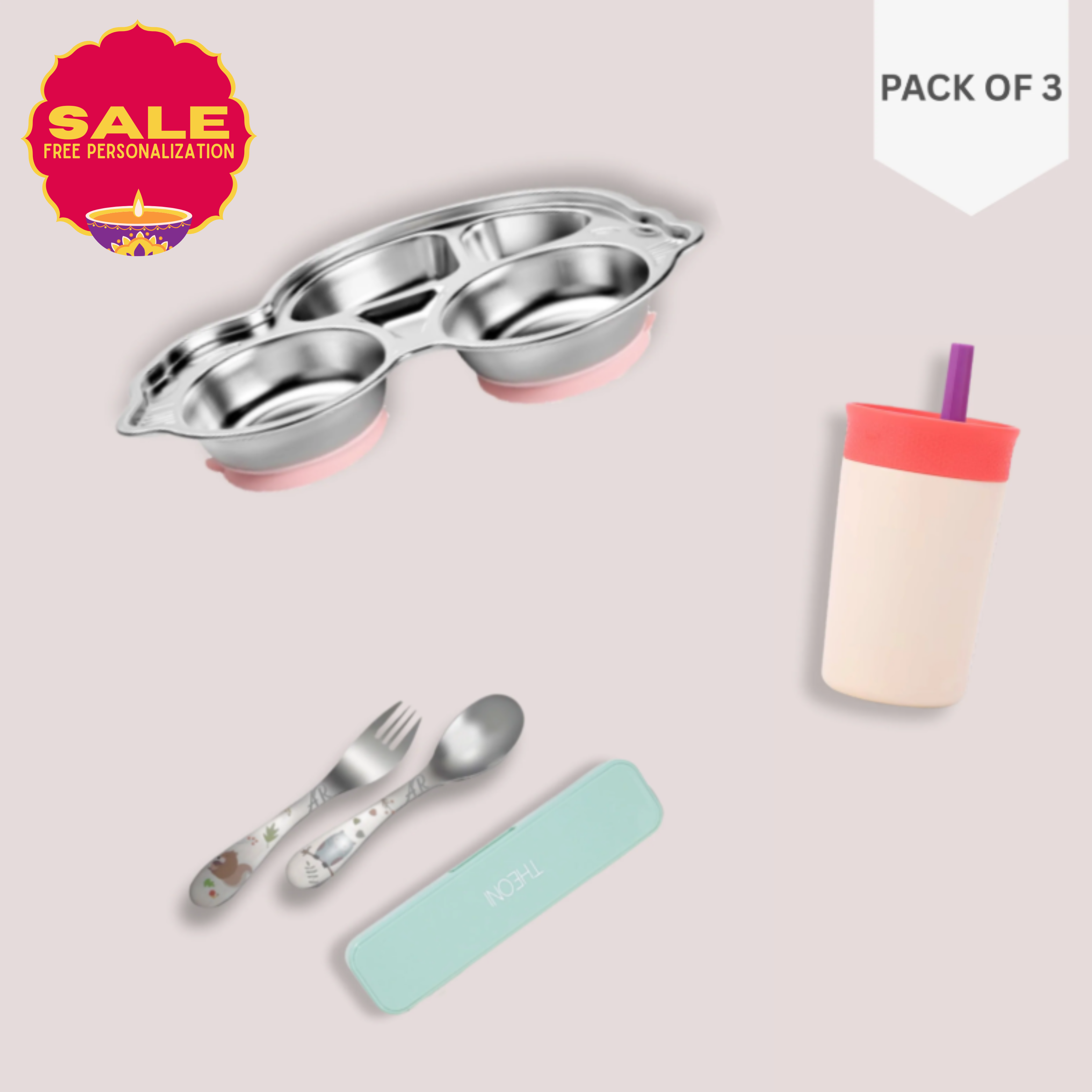 From keeping meals organized to reducing spills and encouraging independent eating, each element of this set is thoughtfully designed with functionality and fun in mind. Made with food-grade stainless steel and completely free from BPA and toxins, it’s a durable, stylish, and parent-approved mealtime essential. Whether you're at home or on the go, this bundle ensures every meal is smooth and mess-free.