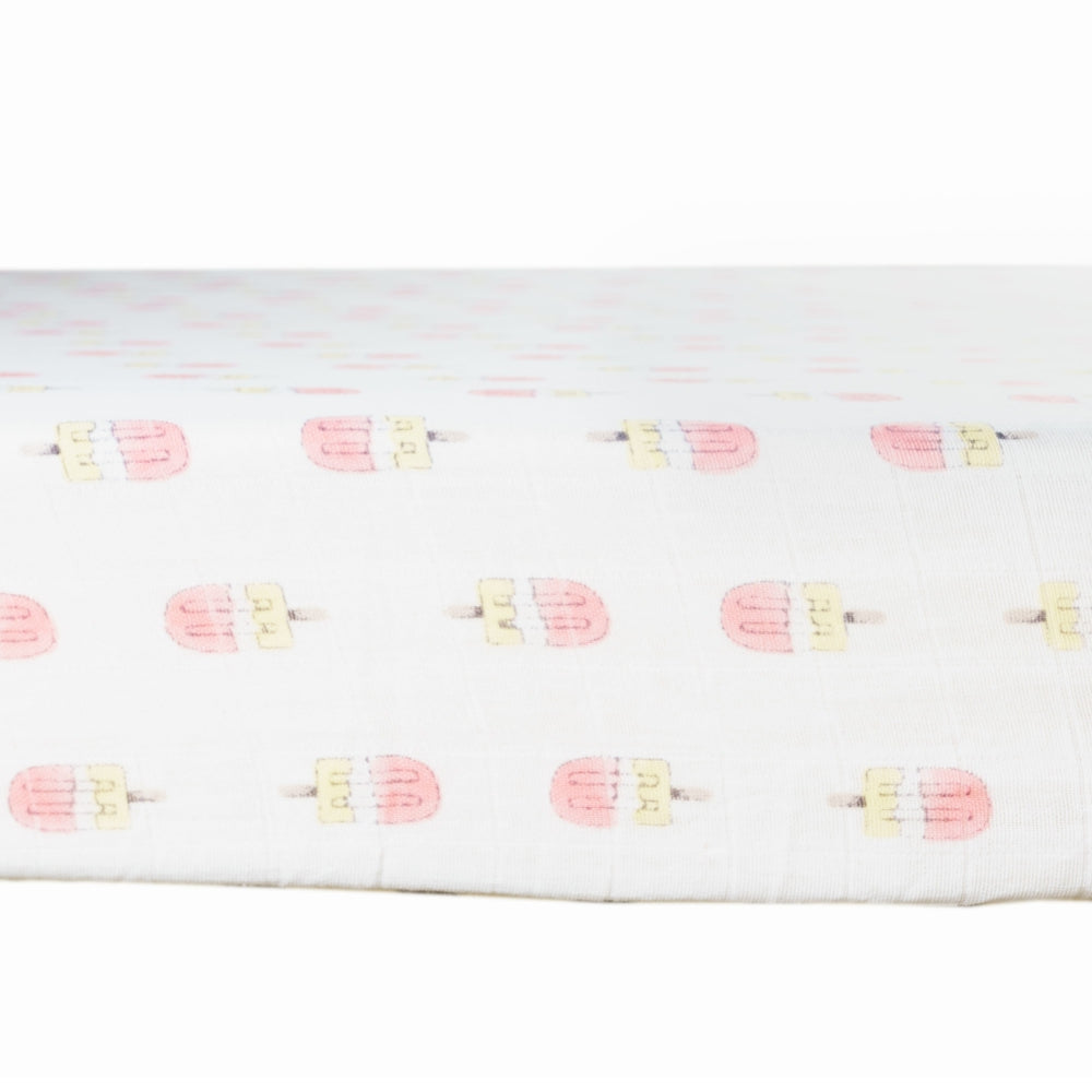 Wrap your little one in the dreamlike comfort of the Theoni Popsicle Fun Pink Fitted Crib Sheet. Made from 100% organic cotton muslin, this crib sheet is the epitome of softness and breathability, ensuring your baby enjoys a serene and restful sleep.