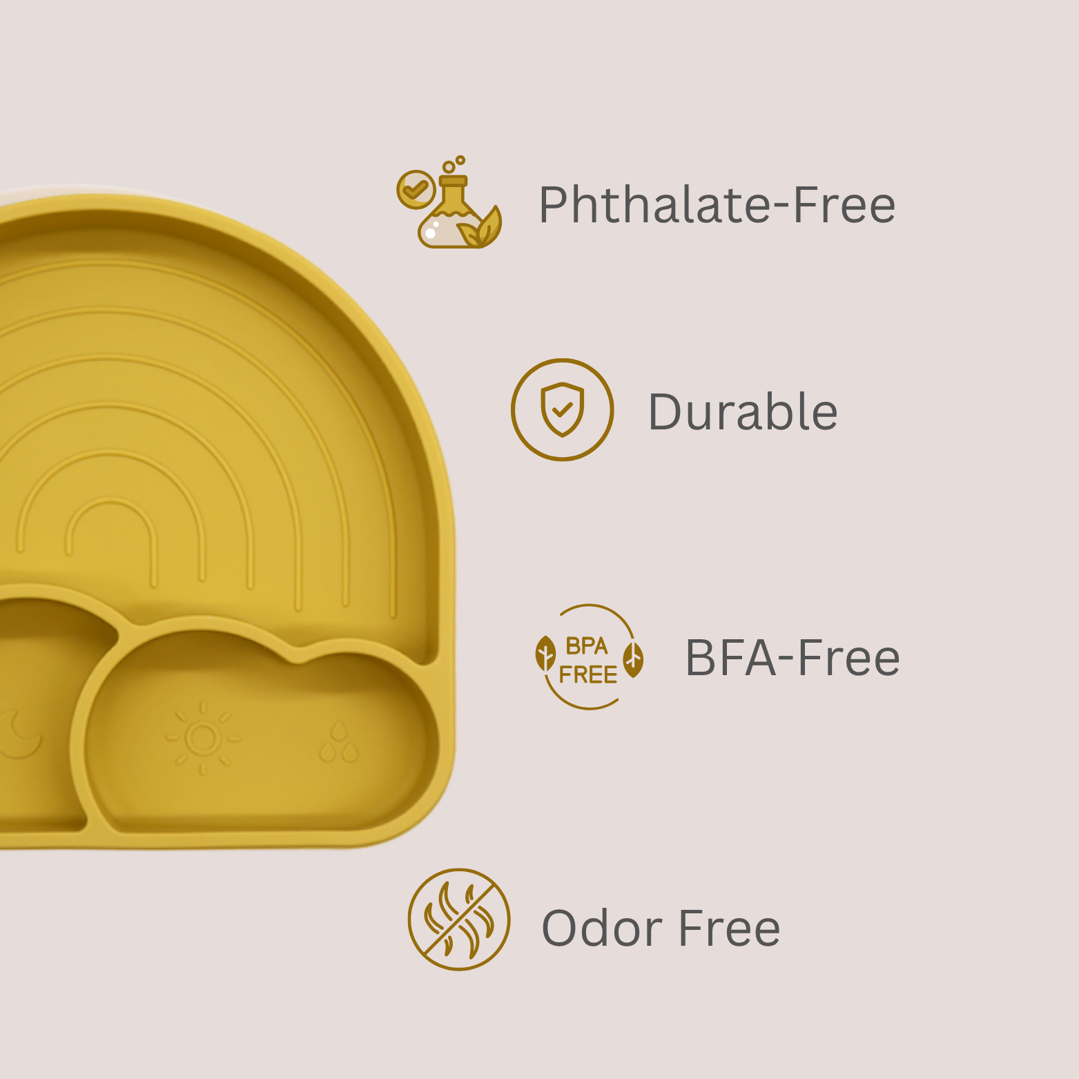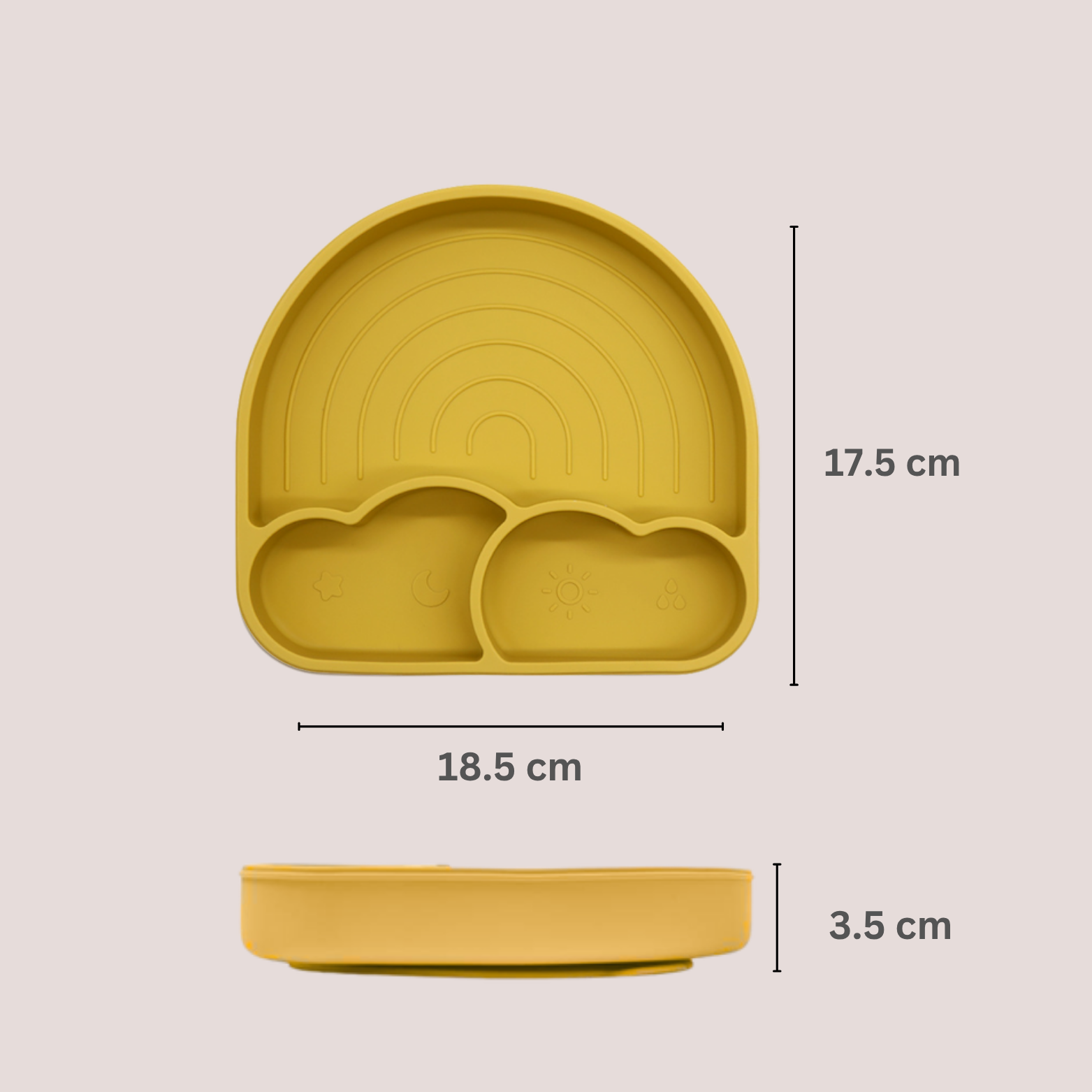 Make mealtime fun and mess-free with the Rainbow Silicone Anti Skid Plate Feeding Set. Designed for babies and toddlers, this feeding set supports baby-led weaning and independent eating while keeping safety and convenience in mind. Made from 100% food-grade silicone, it's non-toxic, BPA-free, and built to handle everyday mealtime messes.
