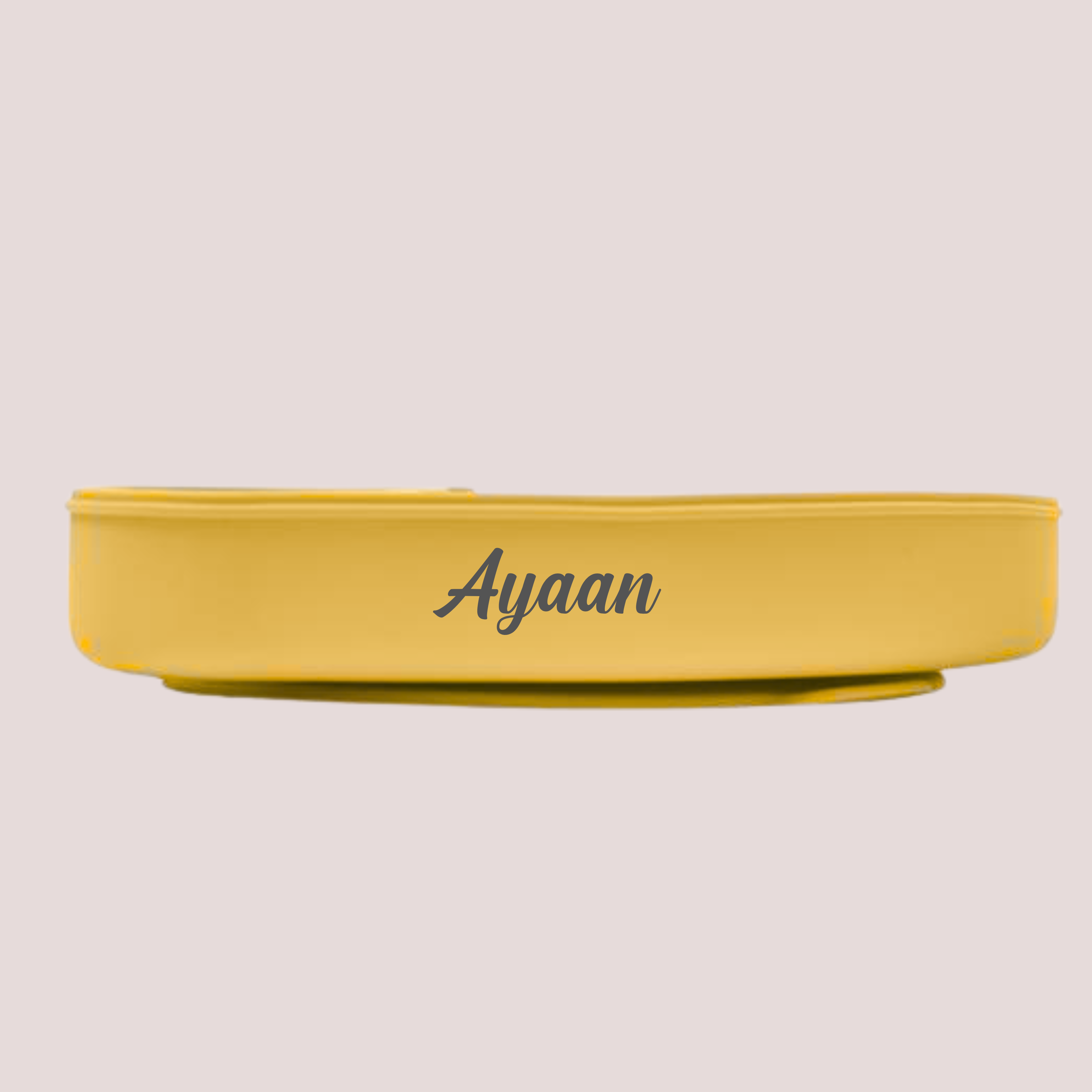 Theoni Silicone Anti Skid Baby Feeding Set with Plate, Spoon & Fork | Baby-Led Weaning | BPA-Free | Microwave & Dishwasher Safe | Mess-Free Toddler Mealtime Essential – Mango