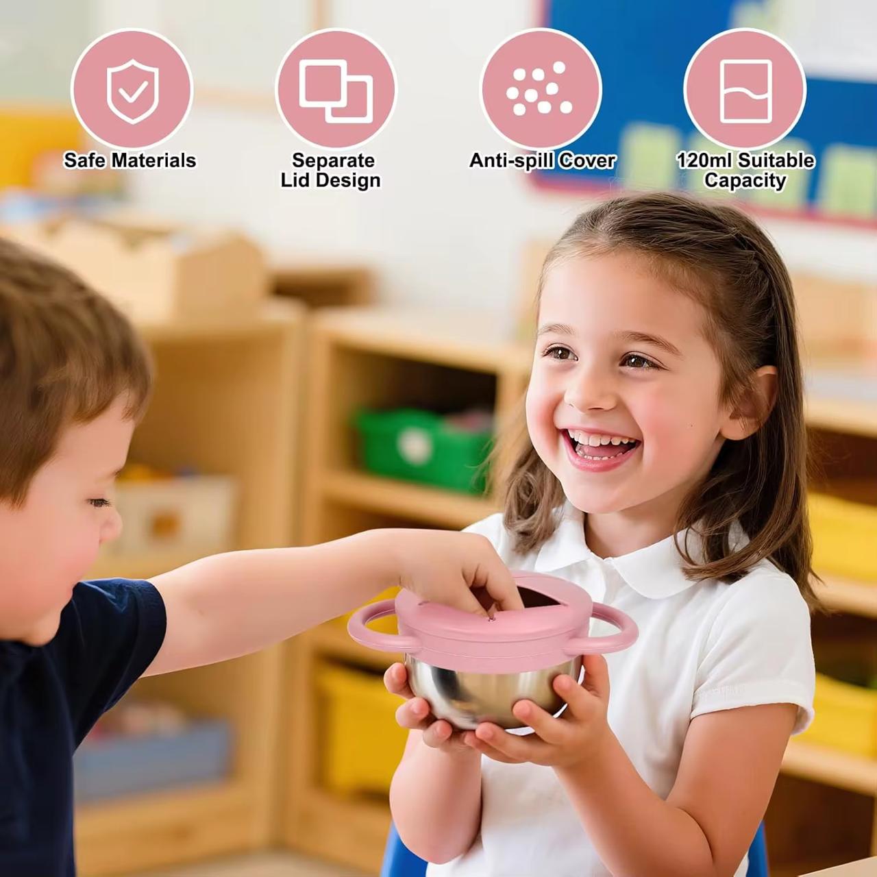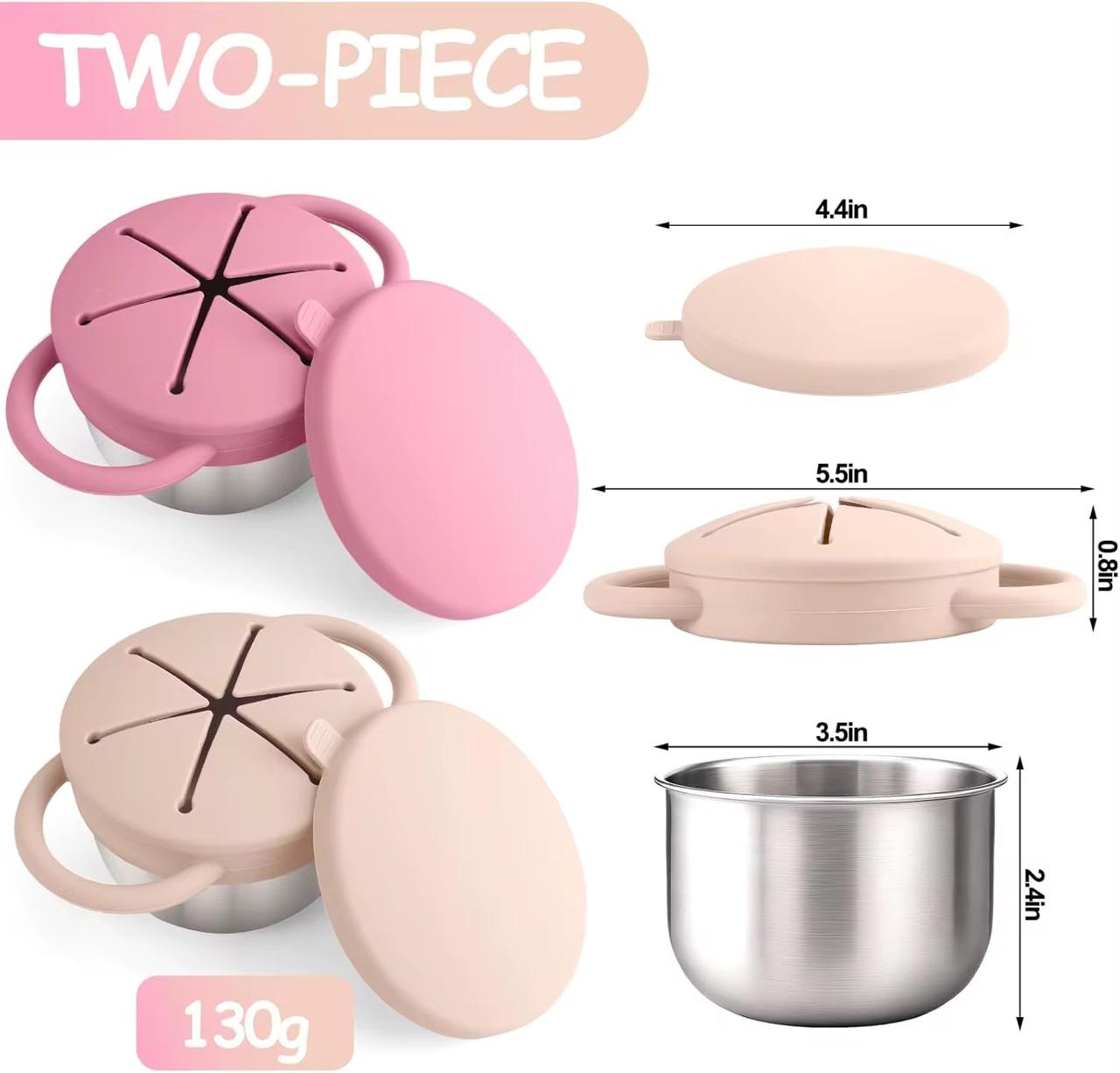 Theoni’s Stainless Steel Snack Cup is the ultimate spill-proof snack container for babies and toddlers. Designed with a soft, food-grade silicone petal lid, it allows easy snack access while preventing spills—perfect for little hands at home or on the go. Made from premium 18/8 stainless steel, this toddler snack cup is durable, odor-resistant, and fully dishwasher safe.