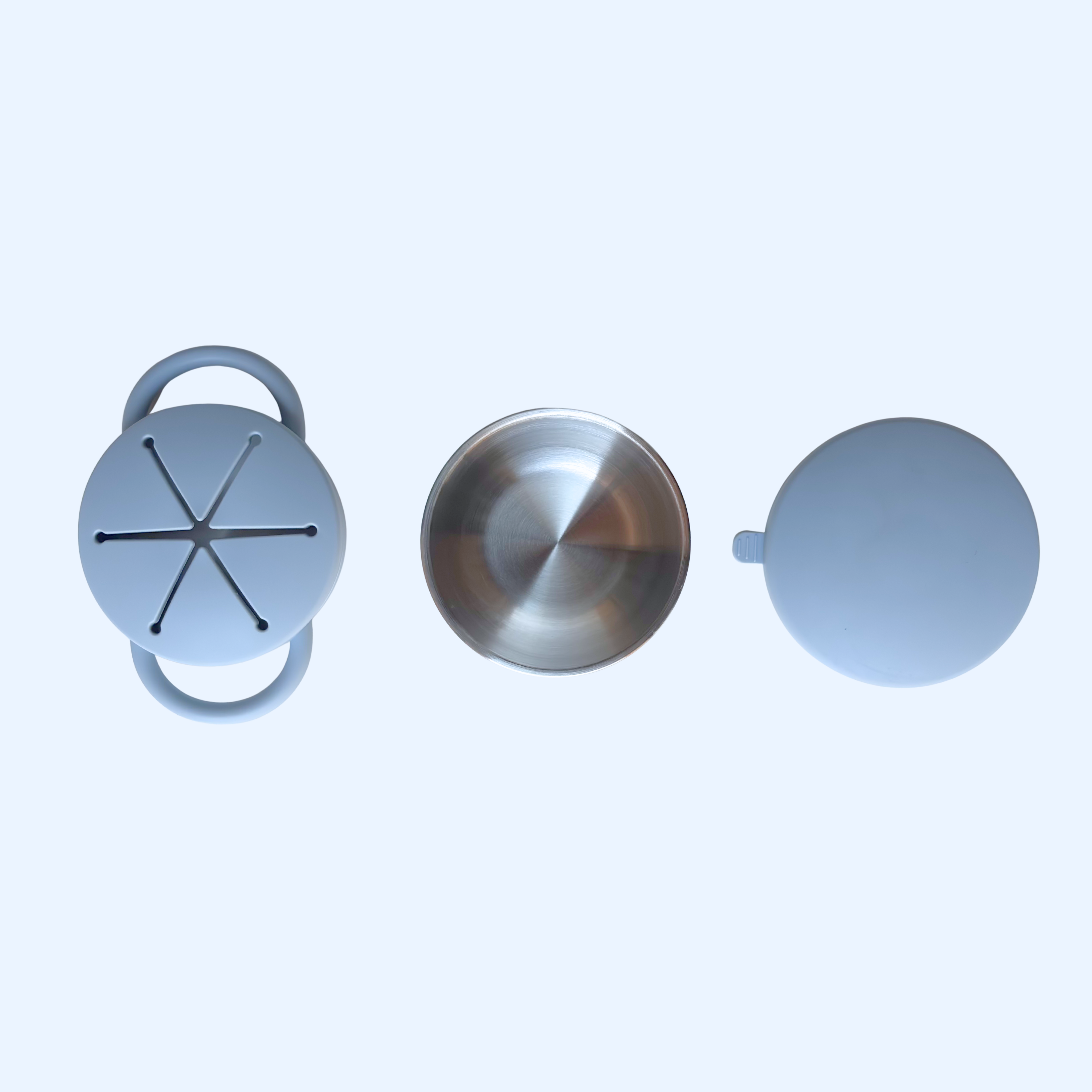 Theoni Stainless Steel Snack Cups with Removable Silicone Food Catcher & Travel Lid – Spill-Proof, Toddler-Friendly, Dishwasher Safe- Dusty Blue