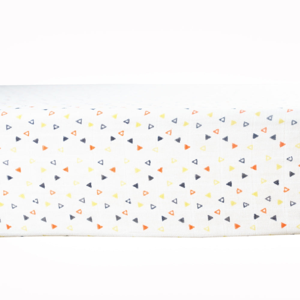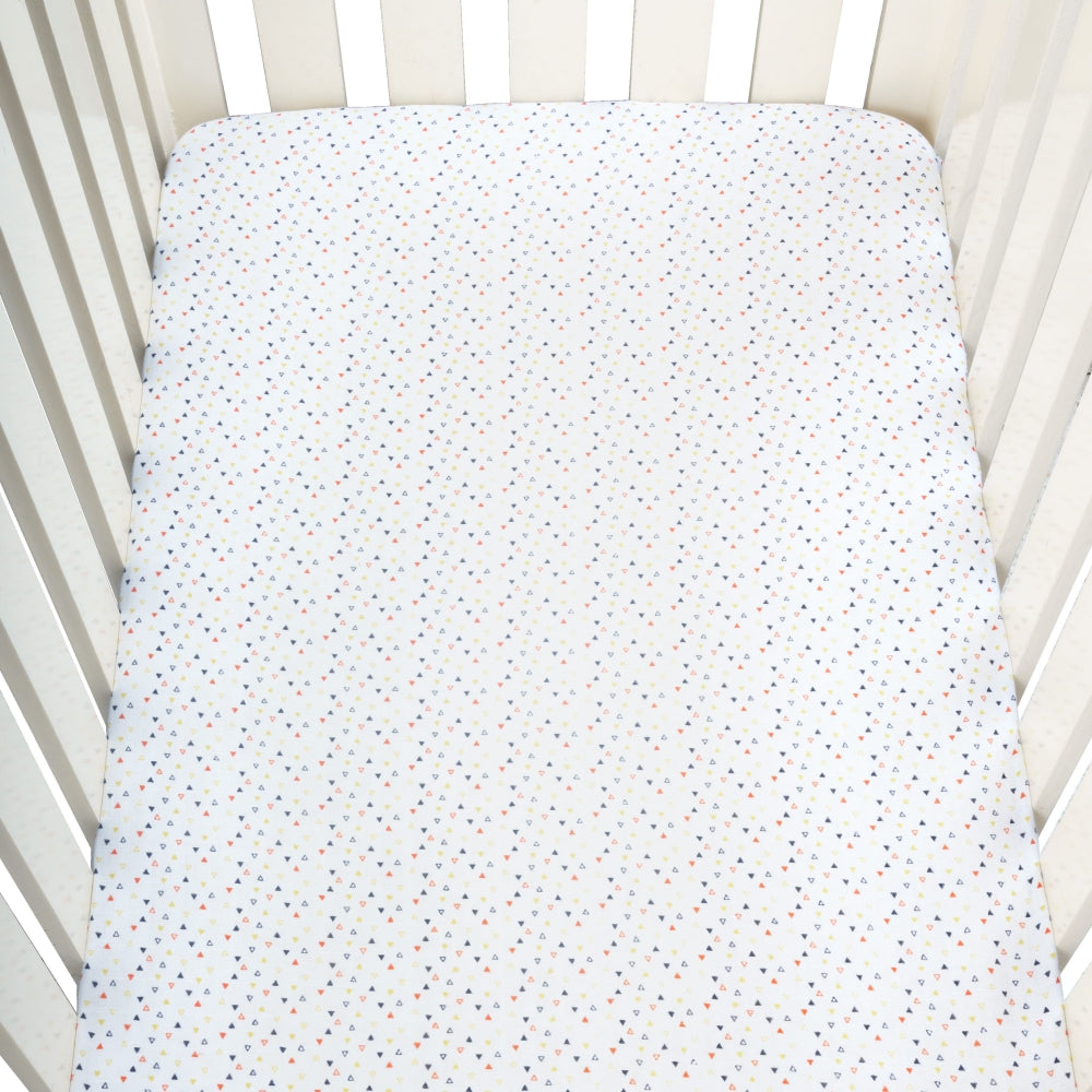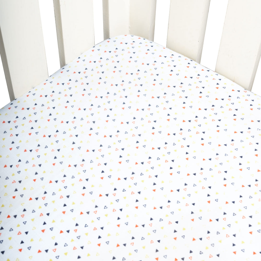 Wrap your little one in the dreamlike comfort of the Theoni Triangle Confetti Fitted Crib Sheet. Made from 100% organic cotton muslin, this crib sheet is the epitome of softness and breathability, ensuring your baby enjoys a serene and restful sleep.